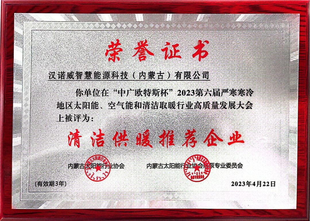 大會還對近年來在嚴(yán)寒地區(qū)太陽能、空氣能清潔供暖市場開發(fā)的過程中,涌現(xiàn)出來的清潔供暖優(yōu)秀企業(yè)進行了表彰,隆重舉行了“2023年第六屆嚴(yán)寒寒冷地區(qū)清潔取暖推薦企業(yè)”頒獎儀式,旨在表彰行業(yè)標(biāo)桿企業(yè),經(jīng)組委會審核,最終12家企業(yè)獲此殊榮。漢諾威作為行業(yè)優(yōu)秀企業(yè)和品牌,獲評本屆大會“嚴(yán)寒地區(qū)清潔取暖推薦企業(yè)”榮譽稱號。