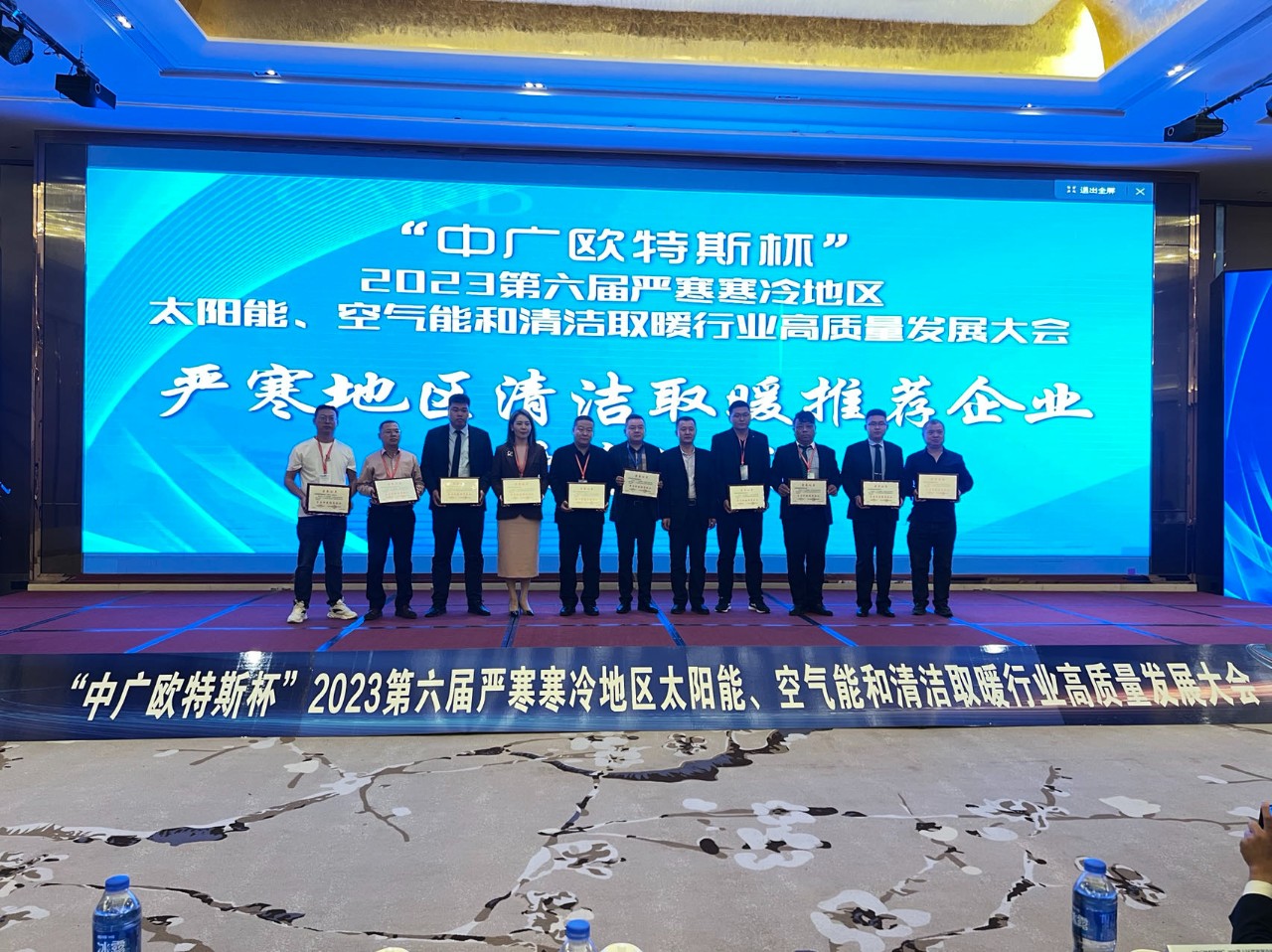 大會還對近年來在嚴(yán)寒地區(qū)太陽能、空氣能清潔供暖市場開發(fā)的過程中,涌現(xiàn)出來的清潔供暖優(yōu)秀企業(yè)進行了表彰,隆重舉行了“2023年第六屆嚴(yán)寒寒冷地區(qū)清潔取暖推薦企業(yè)”頒獎儀式,旨在表彰行業(yè)標(biāo)桿企業(yè),經(jīng)組委會審核,最終12家企業(yè)獲此殊榮。漢諾威作為行業(yè)優(yōu)秀企業(yè)和品牌,獲評本屆大會“嚴(yán)寒地區(qū)清潔取暖推薦企業(yè)”榮譽稱號。
